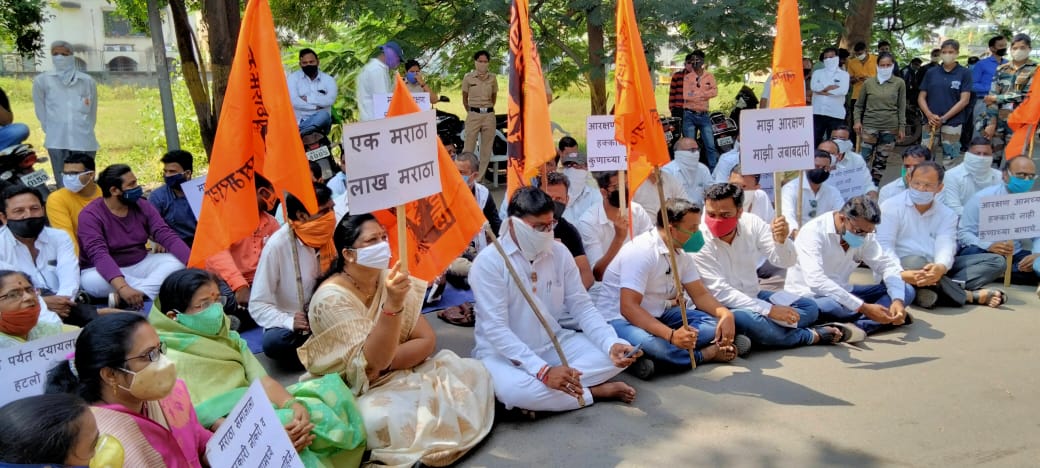 मराठा क्रांती मोर्चाच्या राज्य समन्वयकांच्या नाशिकमध्ये झालेल्या बैठकीत झालेल्या विविध निर्णय घेण्यात आले होते. निर्णयाप्रमाणे मराठा समाजाच्या आरक्षणाच्या प्रश्नासाठी आज, २ ऑक्टोबरला खासदार, आमदार यांच्या घरासमोर निर्देशने करण्याचा निर्णय घेण्यात आला होता. यात आज संगमनेर येथे महसूलमंत्री बाळासाहेब थोरात यांच्या घरासमोर ठिय्या आंदोलन करण्यात आले. या आंदोलनात संगमनेर येथील मराठा आंदोलक यांच्यासोबत महसूलमंत्री बाळासाहेब थोरात यांच्या भगिनी नगराध्यक्षा दुर्गा तांबे तसेच त्यांचे पती आमदार डॉ. सुधीर तांबे हे देखील सहभागी झाले होते. स्नेहालय उचल फाउंडेशन च्या वतीने गरजू महिलांना आटा चक्कीचे वाटप. कल्याण विशाखापट्टणम राष्ट्रीय महामार्गावरील बडेवाडी येथील टोल वसुली थांबवावी अन्यथा आंदोलन. अहमदनगर महापालिका: अखेर पाच स्वीकृत नगरसेवकांची झाली निवड कांग्रेस के पूर्व अध्यक्ष राहुल गांधी और प्रियंका गांधी को युपी पुलिस ने हिरासत में लिया। |