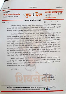 नगर शिवसेनेतील हे गटातटाचे राजकारण मिटावे, यासाठी युवासेनेचे शहरप्रमुख हर्षवर्धन कोतकर यांनी थेट मुख्यमंत्री उद्धव ठाकरे व पर्यावरणमंत्री आदित्य ठाकरे यांना पत्र पाठवले आहे. या पत्रामध्ये त्यांनी महापालिकेत सर्वात मोठा पक्ष ठरलेल्या शिवसेनेला भाजप-राष्ट्रवादीच्या राजकारणामुळे सत्तेपासून दूर राहावे लागले, हे स्पष्ट केले आहे. तसेच शिवसेनेला महापालिकेत विरोधी पक्षनेते पद मिळाले नाही. मनपा स्थायी समितीचे सभापतीपद सुद्धा शिवसेनेला मिळाले नाही, असे म्हंटले आहे. तसेच काही वर्षापासून शिवसेनेत अंतर्गत गटातटाचे राजकारण सुरू झाल्याने शिवसेनेची ताकद विखुरली जात आहे. याचा फायदा विरोधक उठवत आहेत. आजही महापालिकेत शिवसेनेचे २३ नगरसेवक आहेत. माझे कुटुंब-माझी जबाबदारी’ मोहिम तालुकास्तरीय यंत्रणांनी गतिमानतेने काम करण्याची गरज- जिल्हाधिकारी मराठा महिला पदाधिकारी यांचे नगर येथे तहसीलदारांच्या दालनात ठिय्या आंदोलन. केंद्राच्या कृषी कायद्यातील उणीवा दूर करणे गरजेचे- मुख्यमंत्री उद्धव ठाकरे विधानपरिषदेचे विरोधी पक्ष नेते श्री.प्रवीणजी दरेकर यांची सदिच्छा भेट. |